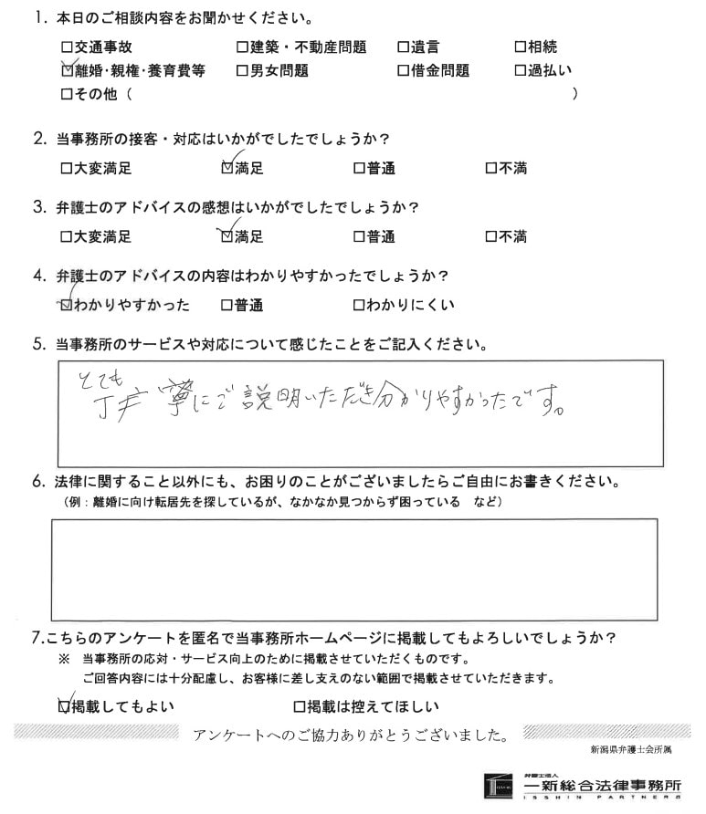 新潟の弁護士による離婚・慰謝料の相談 > お客様の声 > ご相談者 > 「とても丁寧にご説明いただき分かりやすかったです。」 > niigata-rikon1-min