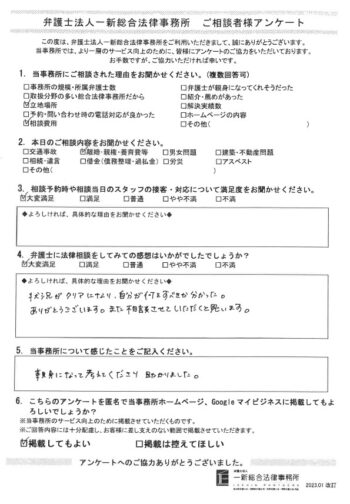 新潟の弁護士による離婚・慰謝料の相談 > お客様の声 > ご相談者 > 「状況がクリアになり、自分が何をすべきか分かった。」 > sanjyo-rikon