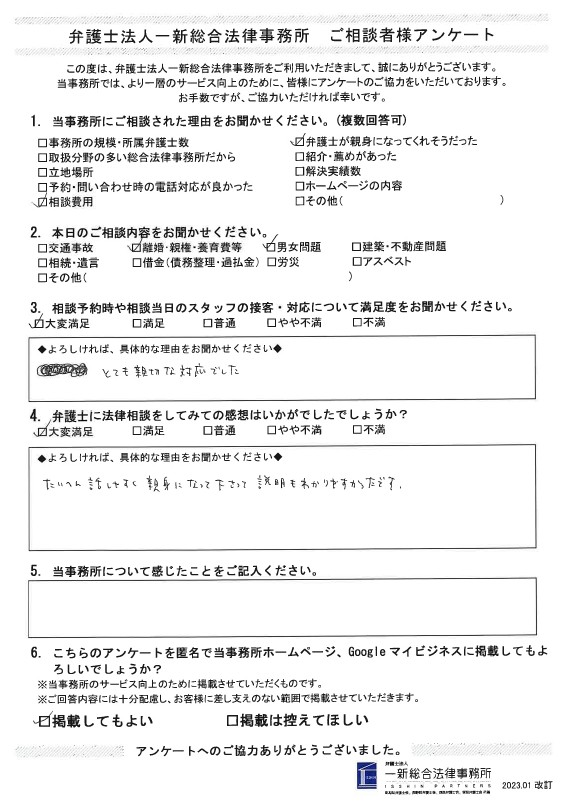 「たいへん話しやすく、親身になって下さって、説明も分かりやすかったです。」