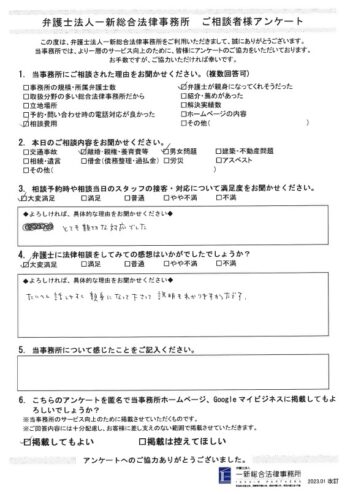 新潟の弁護士による離婚・慰謝料の相談 > お客様の声 > ご相談者 > 「たいへん話しやすく、親身になって下さって、説明も分かりやすかったです。」 > niigata-rikon2