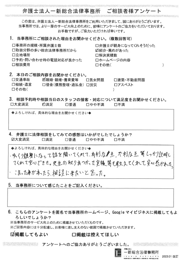 離婚・親権・養育費等でご相談されたお客様の声をご紹介します