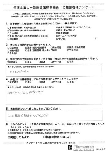 新潟の弁護士による離婚・慰謝料の相談 > お客様の声 > ご相談者 > 「とても親切で親身になってくださる」 > nagaoka-rikon