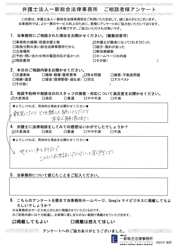 「親身になりとても詳しく聞いてくださり不安が解消された」