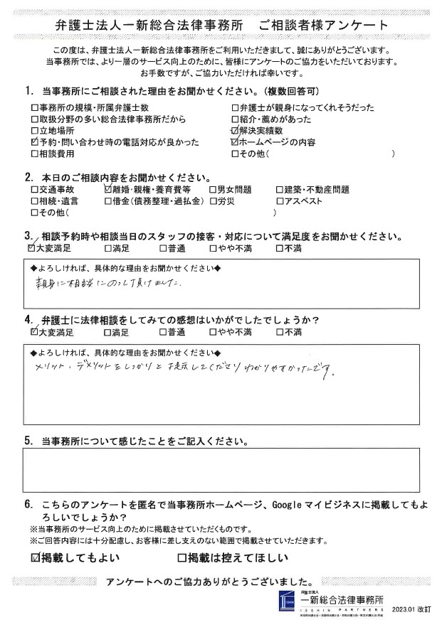 離婚・親権・養育費等について新潟事務所でご相談されたお客様の声をご紹介します
