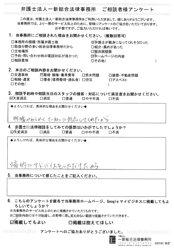 離婚・親権・養育費等について新潟事務所でご相談されたお客様の声をご紹介します