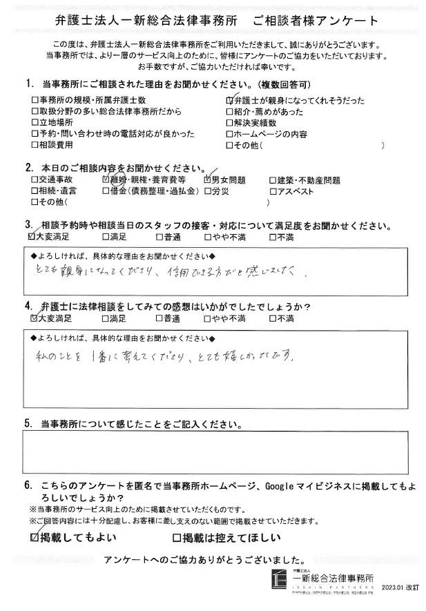 離婚・親権・養育費等について新潟事務所でご相談されたお客様の声をご紹介します