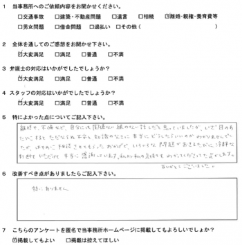新潟の弁護士による離婚・慰謝料の相談 > お客様の声 > ご依頼者 > 《お客様の声》冷静な判断をいただけて、本当に感謝しています。(離婚・親権・養育費等のご依頼) > questionnaire02